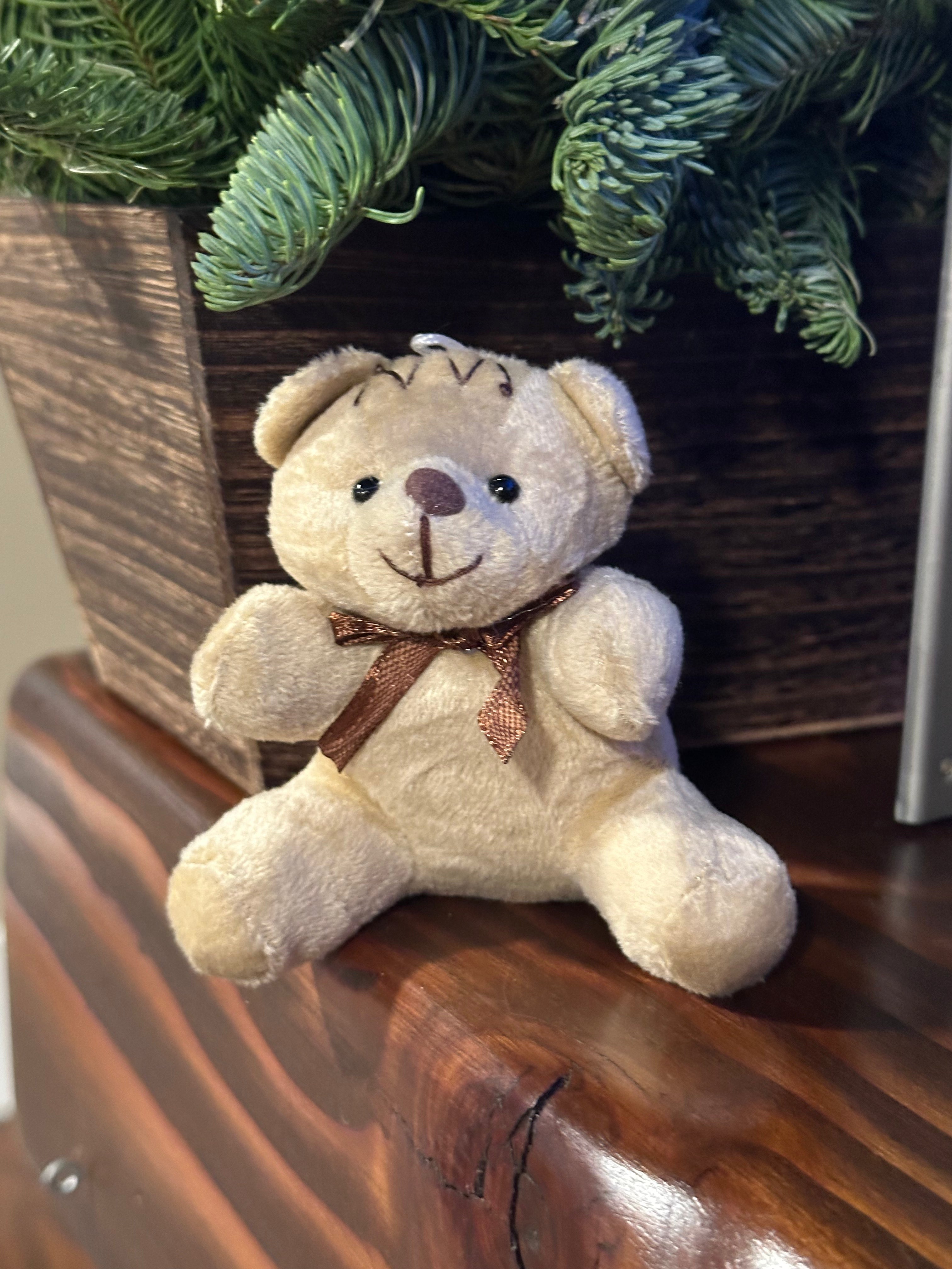 Small bear with stitches on the head. Limited supply of each. There are zigzag bears or ones with a small straight scar to resemble endo. Bandage bears are also available this year
